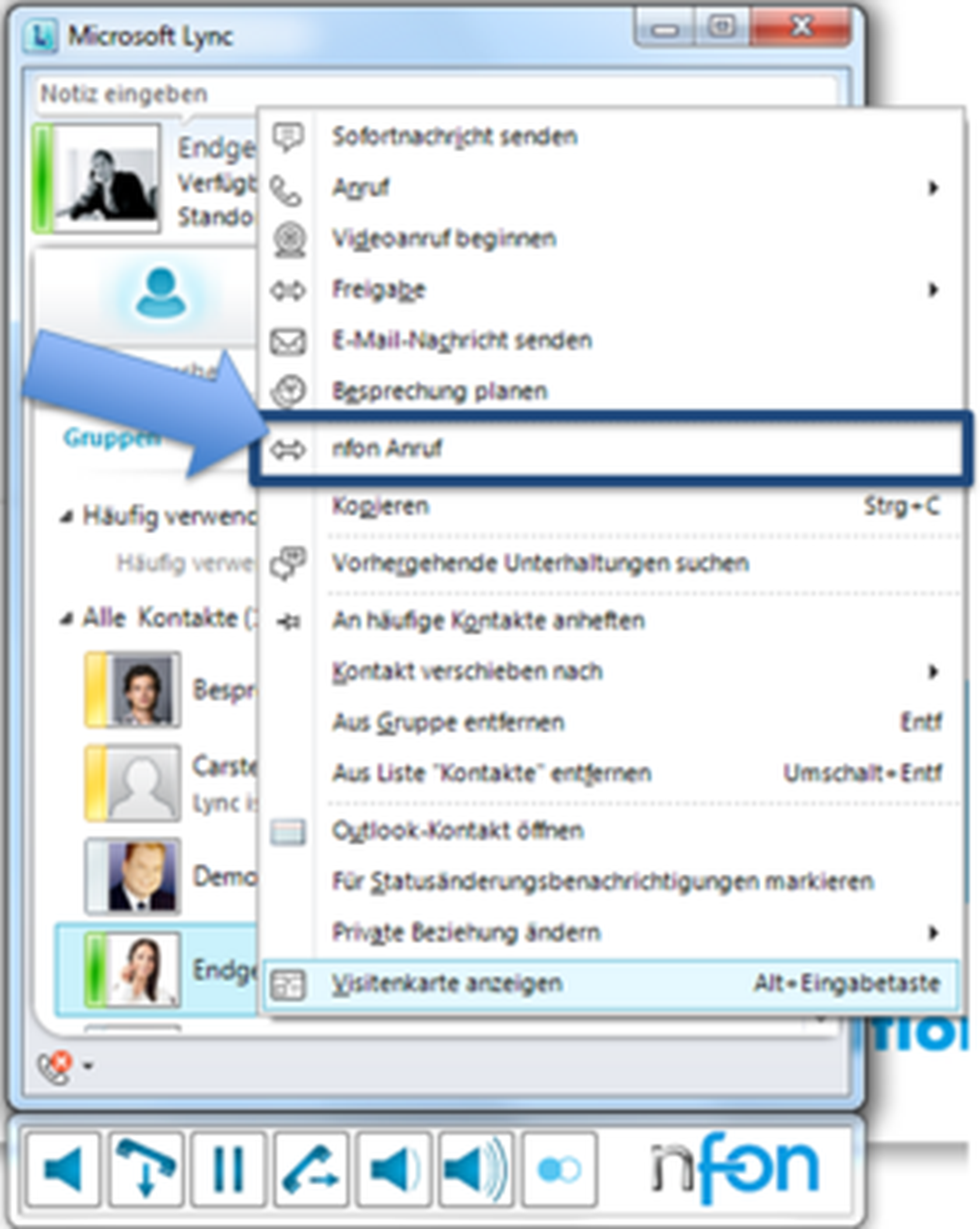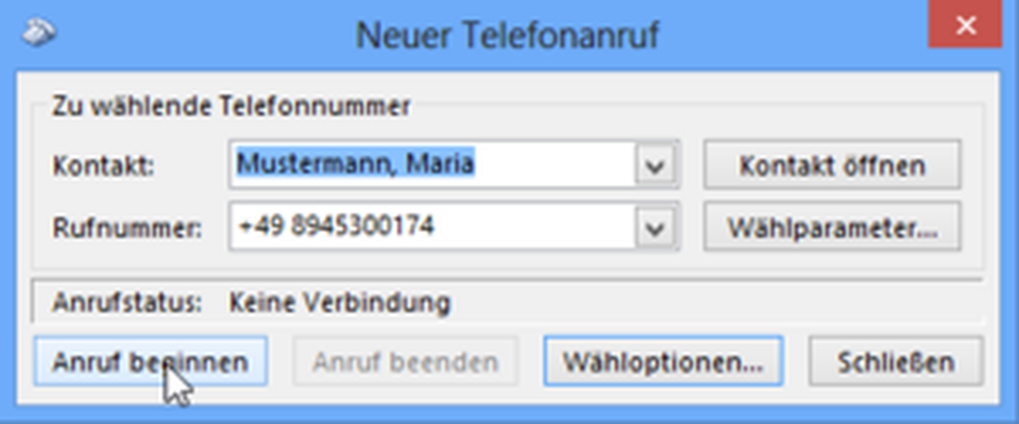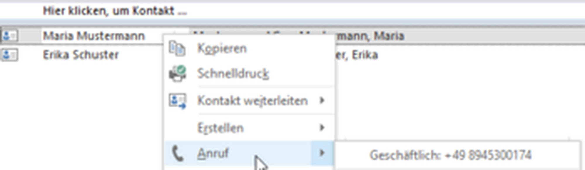 -Klicken Sie mit Rechtsklick auf einen Namen, etwa "Maria Mustermann" und wählen dann "Anruf".