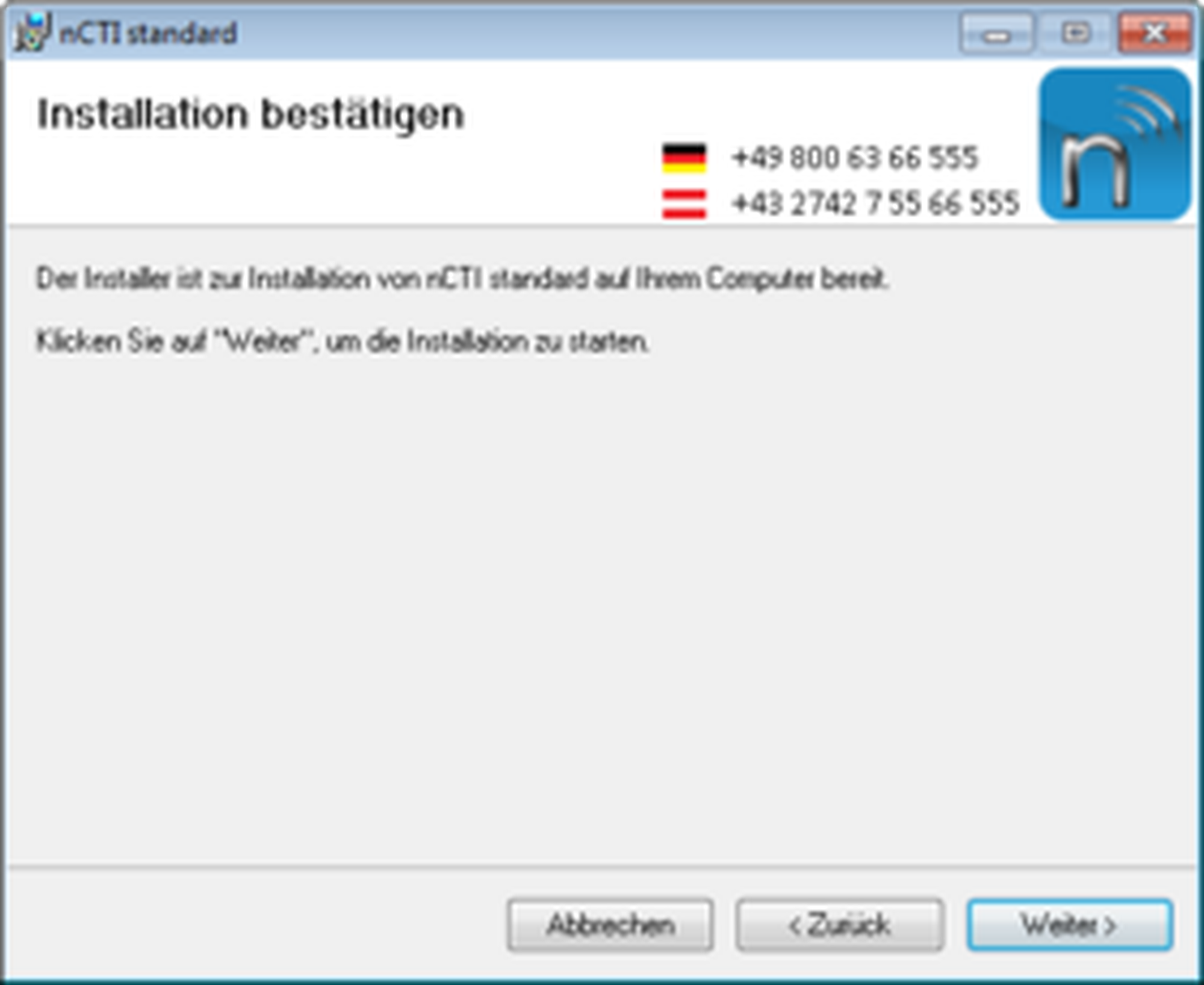 Der NCTI standard Client ist grundsätzlich in zwei Versionen verfügbar. Standardmäßig ist keine CRM Integration enthalten. Je nachdem, welche Version Sie nutzen, können Sie sich die entsprechende Installationsdatei für den NCTI standard oder NCTI standard CRM Client von der Downloadseite unter Software herunterladen.