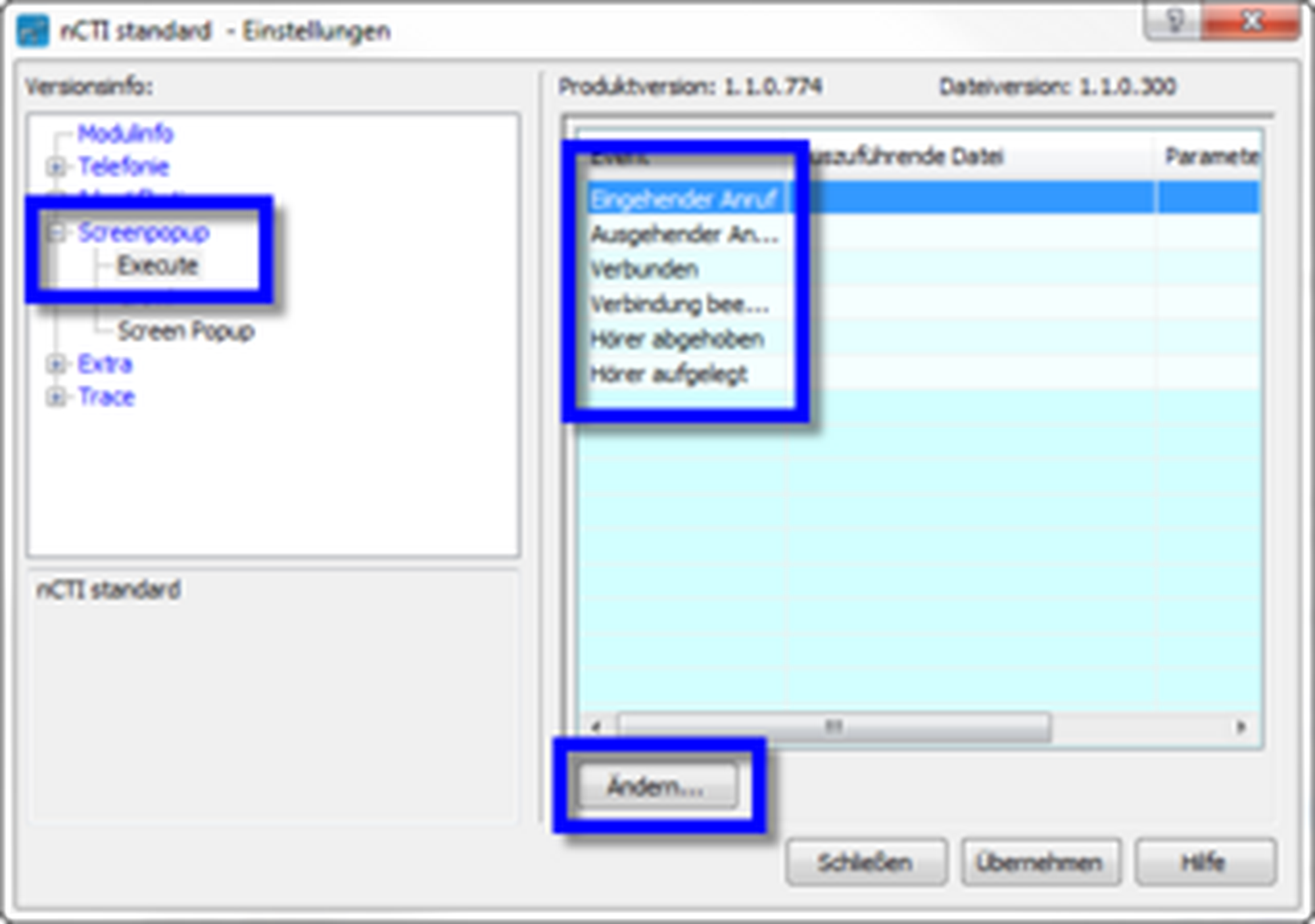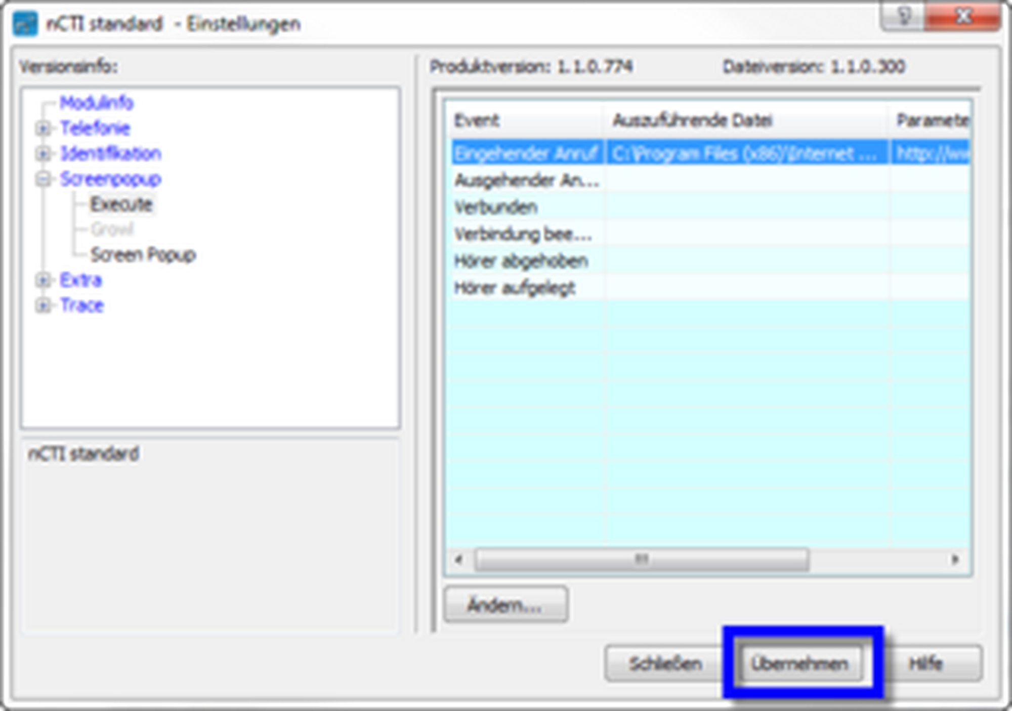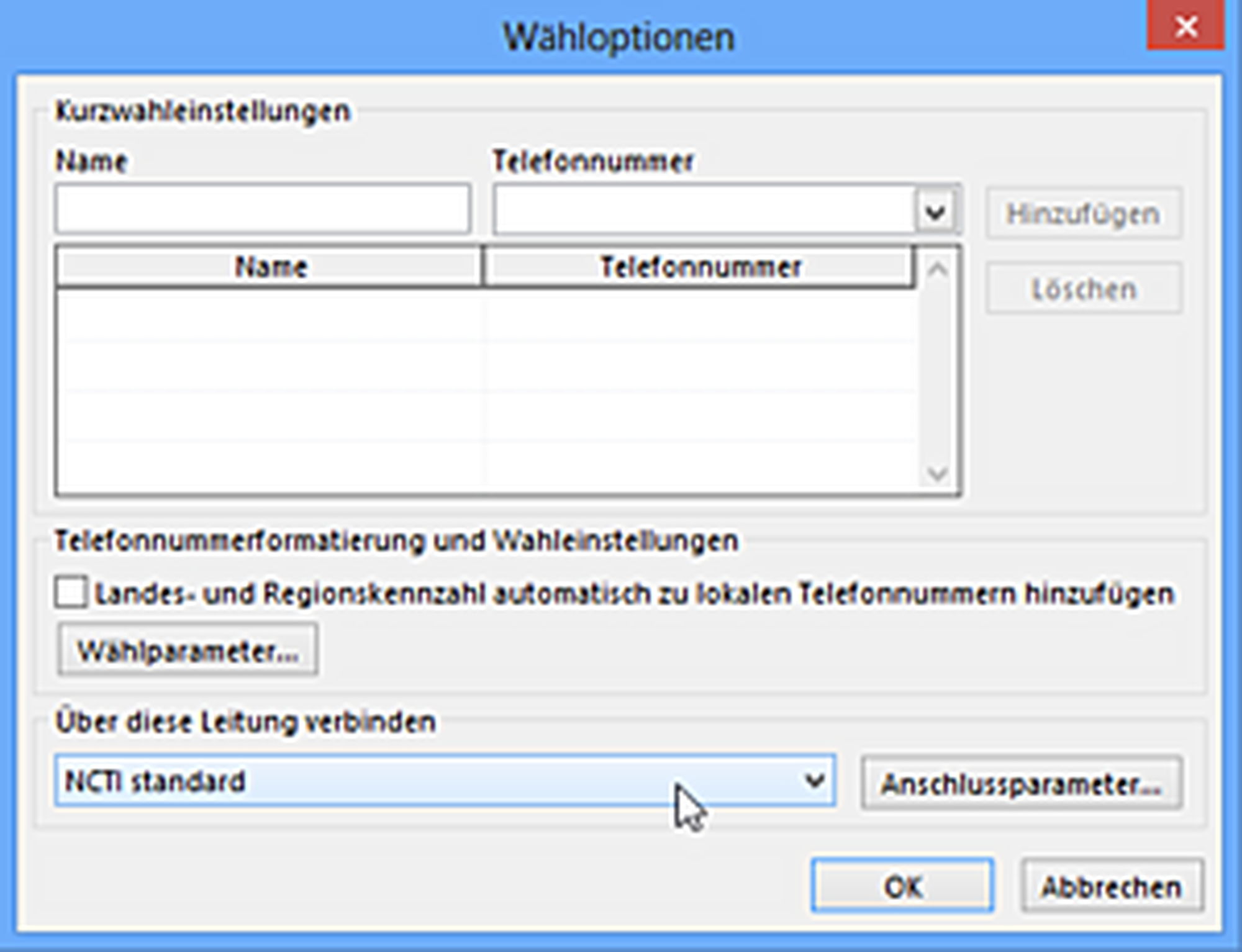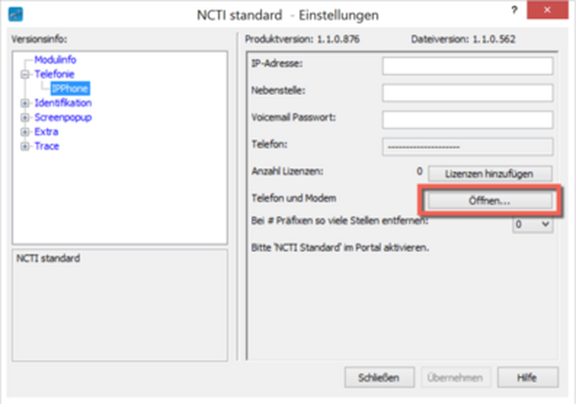 Der Name der TAPI Telefonleitung lautet: NCTI standard