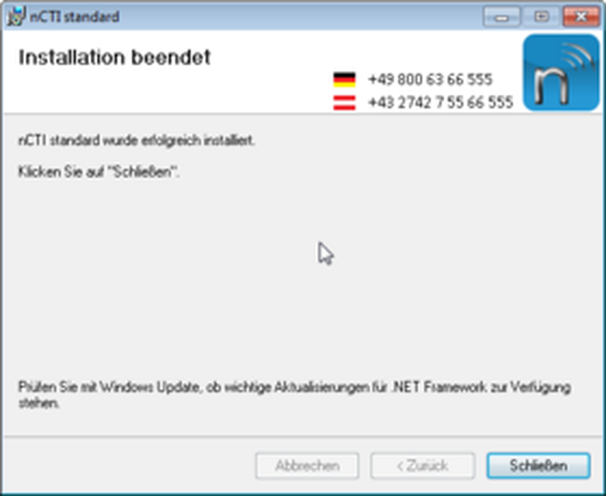 Hiermit ist die Installation erfolgreich abgeschlossen!