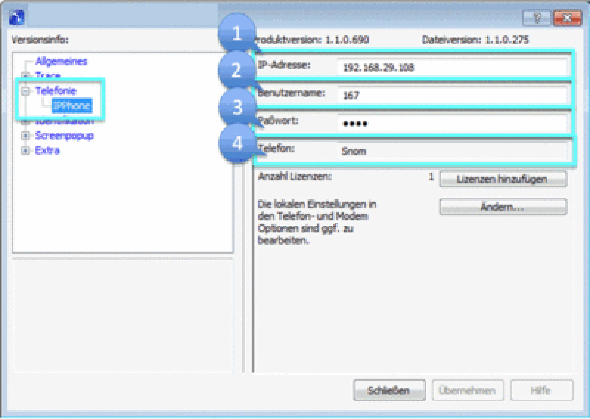 ein IP-Telefon der Hersteller Mitel (ehem. AASTRA), Panasonic (ausgenommen DECT-Telefone), snom oder Yealink