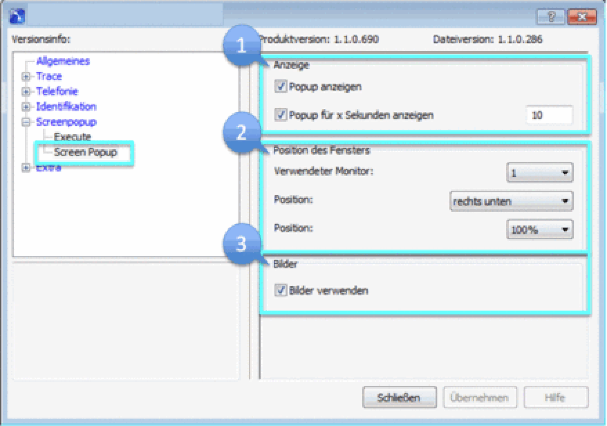 - Wählen Sie im Einstellungsmenü den Punkt Screenpopup und anschließend den Unterpunkt Execute, indem Sie auf das "+"-Symbol klicken.