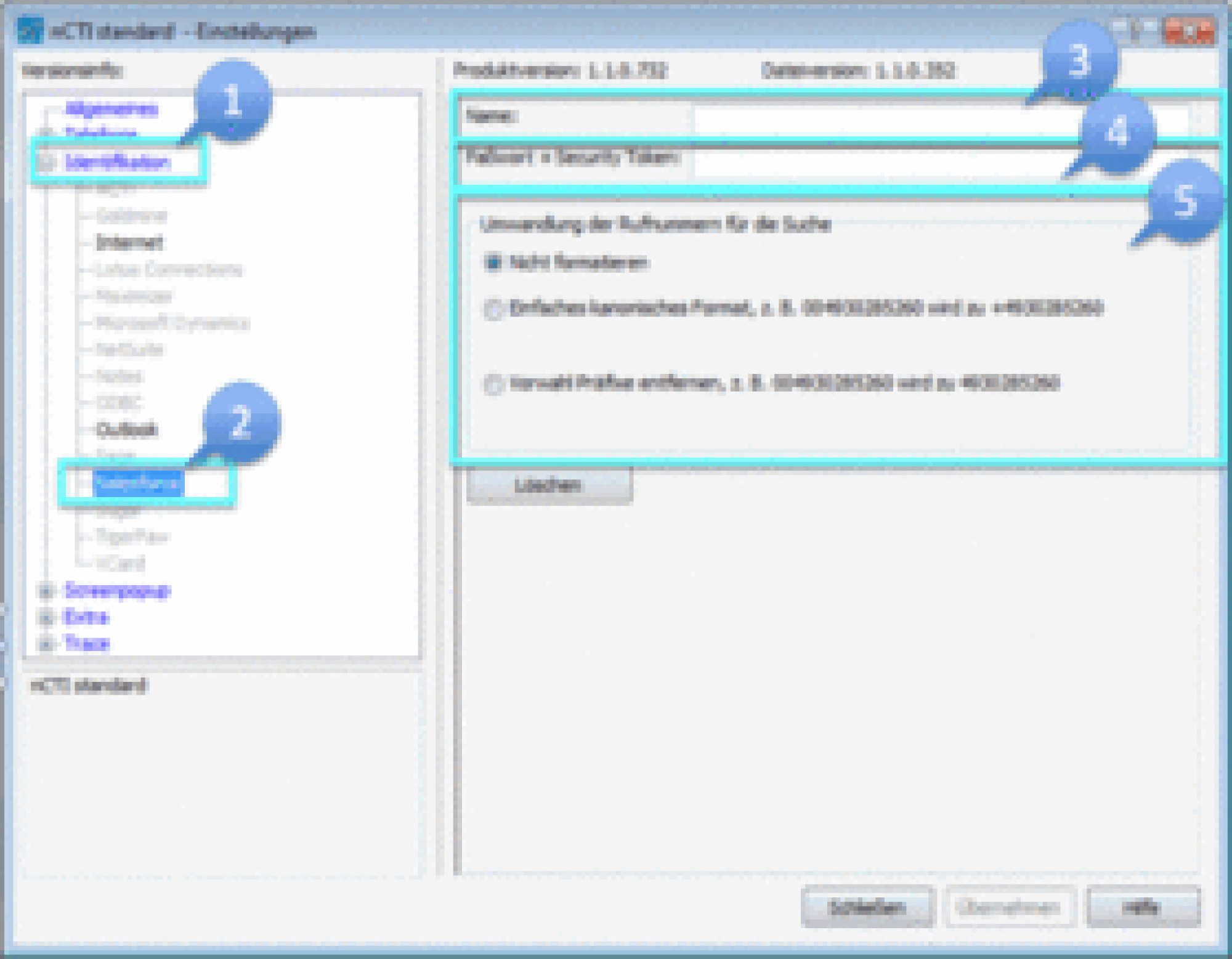 -Wählen Sie, ob die hinterlegten Rufnummern aus Salesforce nicht formatiert, in einfachem kanonischen Format oder ohne Präfixe formatiert werden sollen.