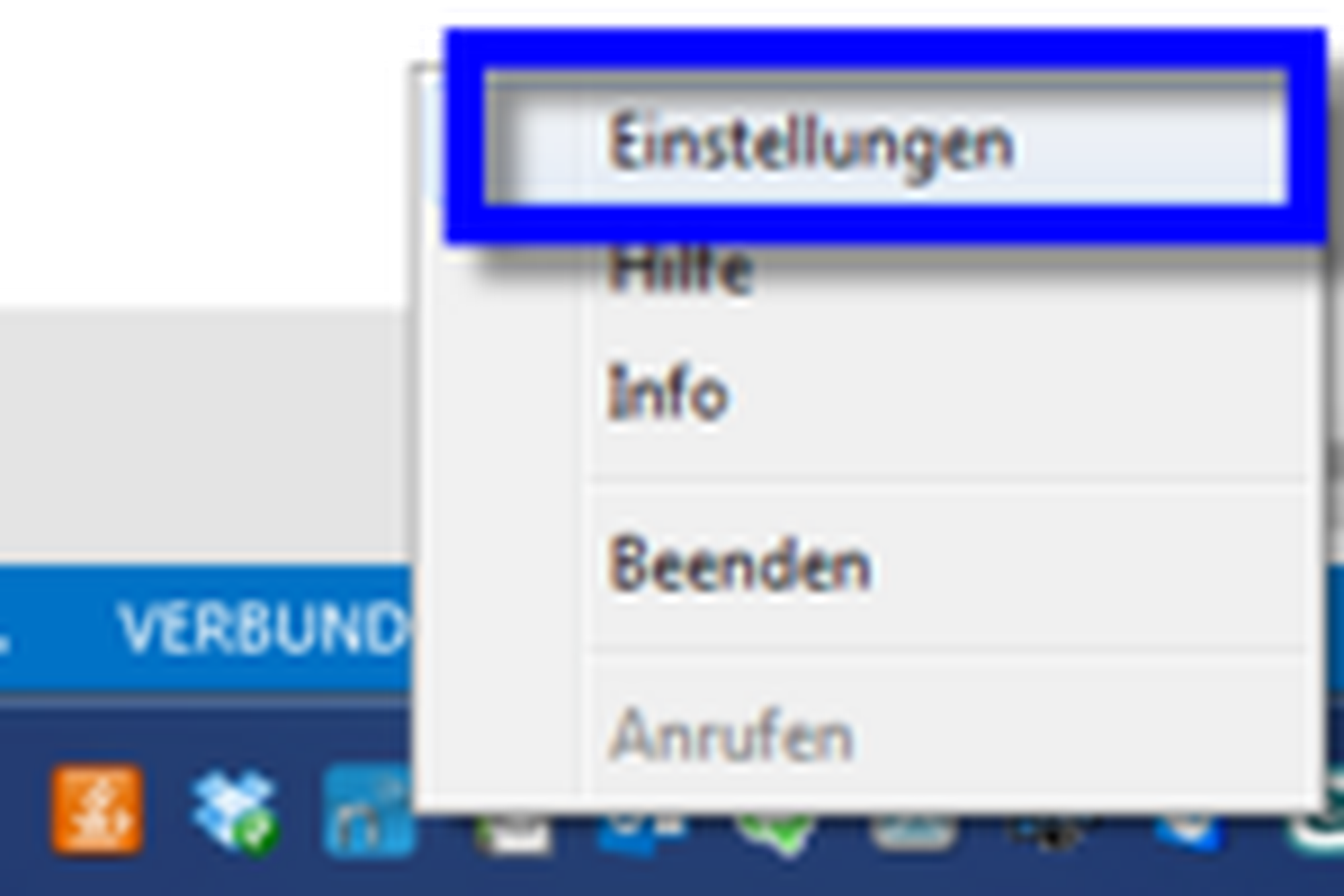 Symbol in der Menüleiste auf Ihrem Desktop, um auf die Administrationsoberfläche des Clients zu gelangen.