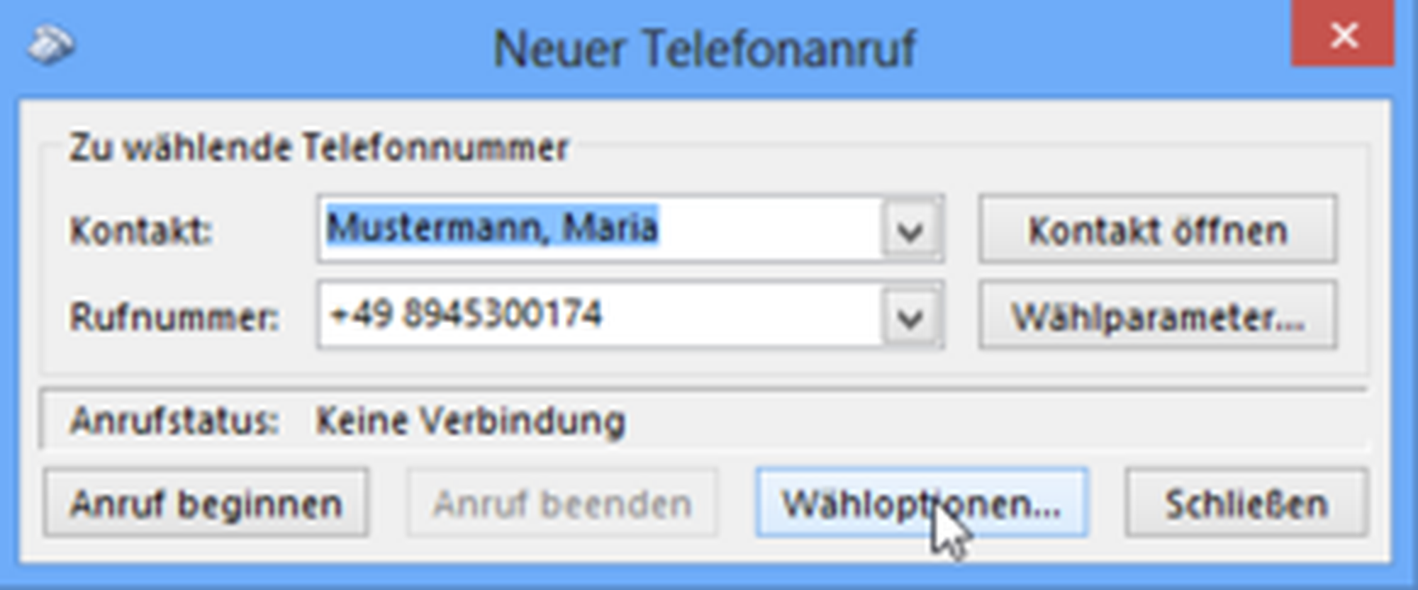 - Klicken Sie dazu auf "Wähloptionen" .