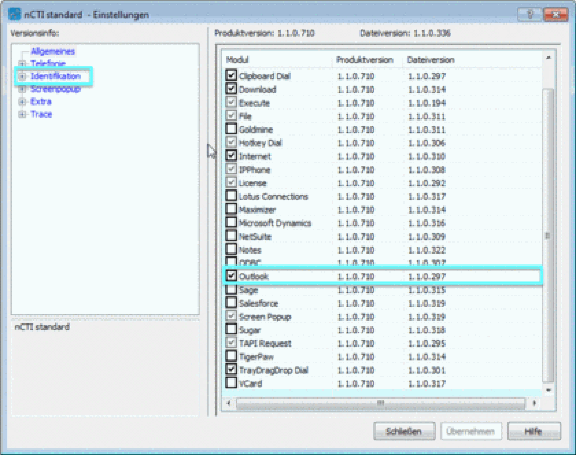 - Um Outlook zu aktivieren, wählen Sie "Outlook" aus der Liste aus und setzen ein Haken in dem Kästchen.